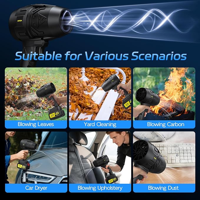 - Versatile use: the turbo fan jet blower can not only free your car from dust, snow and leaves, but can also be used for small and large details in daily life, leaves, dust, water stains in the yard, garden, on the patio, etc. to give you a clean and comfortable environment.